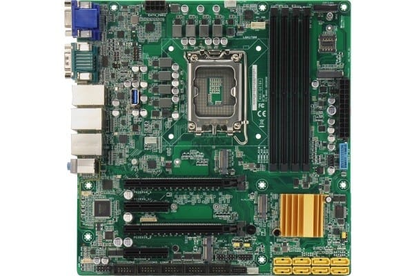 MAX-Q670A Micro-ATX motherboard supports 12th to 14th Gen Intel Core processors, featuring advanced graphics and extensive connectivity options including USB 3.2 and multiple display outputs for industrial applications.